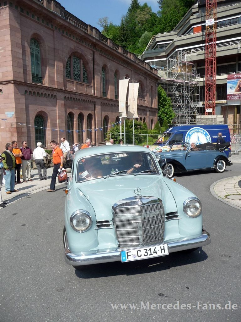MBIG in Bad Wildbad. Schöne Autos in schöner Umgebung! Es herrschte am Christi-Himmelfahrts-Donnerstag traumhaftes Wetter als Organisator Michael Geyer und seine Clubkollegen am Rondell vor dem Kurplatz in Bad Wildbad ihre Teilnehmer willkommen hießen. Rund 200 Mercedes Veteranen vom 170 oder Ponton bis hin zum Baby-Benz strebten in den weltbekannten Kurort, der eine malerische Kulisse für die schönen Sterne abgab!