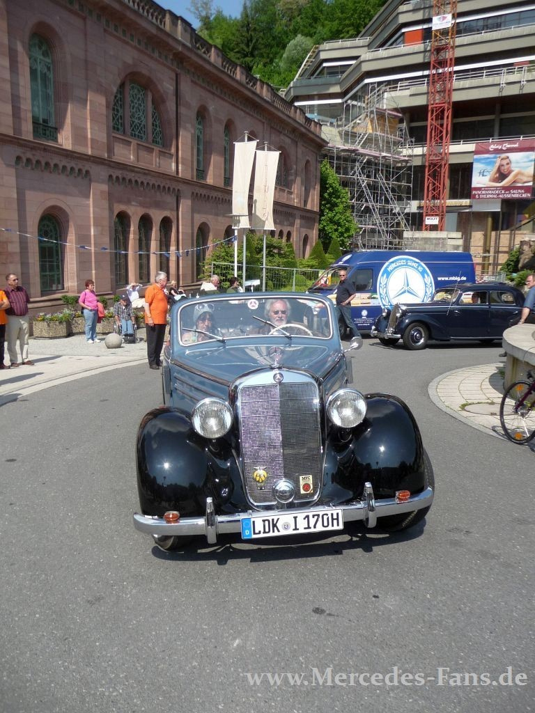 MBIG in Bad Wildbad. Schöne Autos in schöner Umgebung! Es herrschte am Christi-Himmelfahrts-Donnerstag traumhaftes Wetter als Organisator Michael Geyer und seine Clubkollegen am Rondell vor dem Kurplatz in Bad Wildbad ihre Teilnehmer willkommen hießen. Rund 200 Mercedes Veteranen vom 170 oder Ponton bis hin zum Baby-Benz strebten in den weltbekannten Kurort, der eine malerische Kulisse für die schönen Sterne abgab!