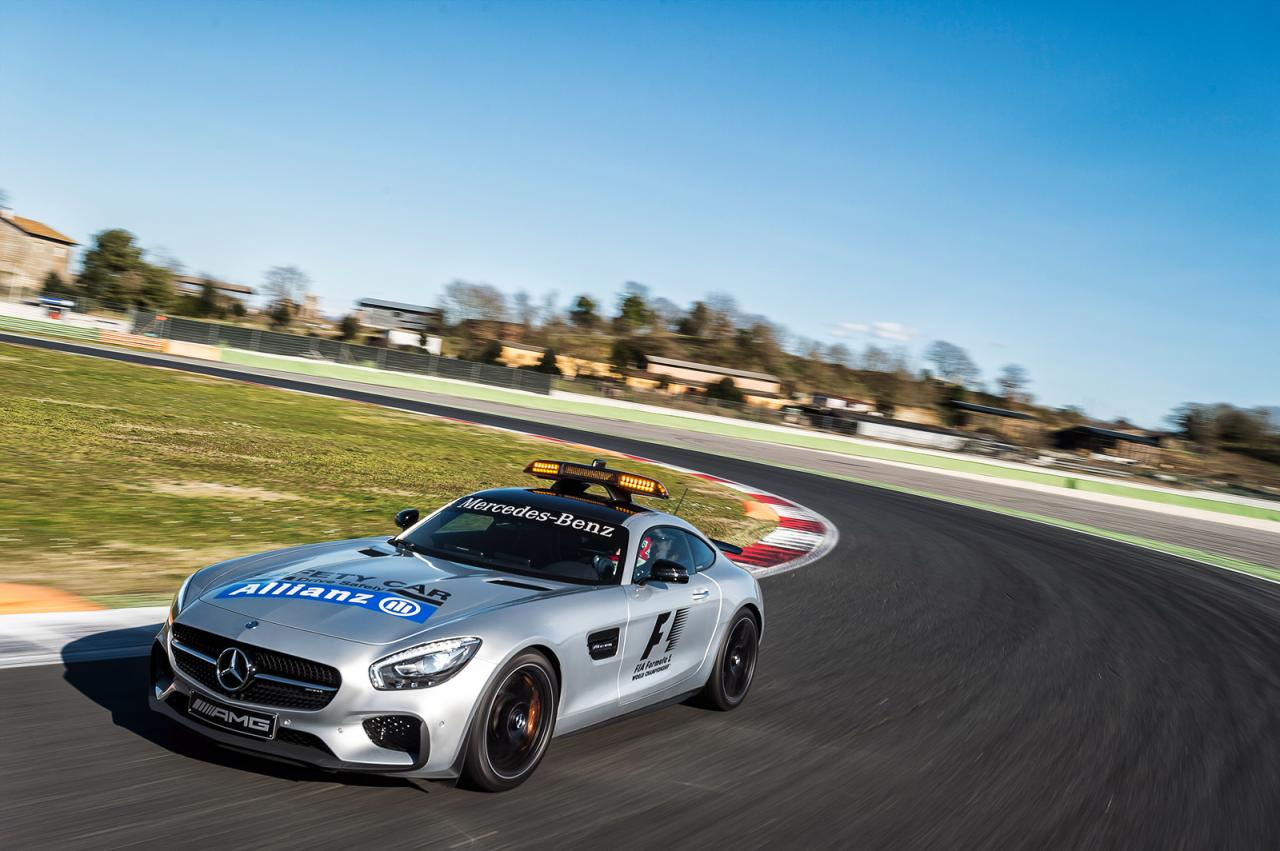 Noch bevor die Formel-1-Saison 2015 beginnt, steht fest: Mercedes-Benz fährt voran.  Wie in den vorhergehenden Saisons  der Königsklasse des Motorsports, stellen die Stuttgarter nämlich das Safety Car.  Diesmal wird  der brandneue Mercedes-AMG GT S den Formel-1-Boliden die Rücklichter zeigen. Auch das Medical Car kommt aus Affalterbach: Es ist ein entsprechend umgerüsteter Mercedes-AMG  C63 S.
