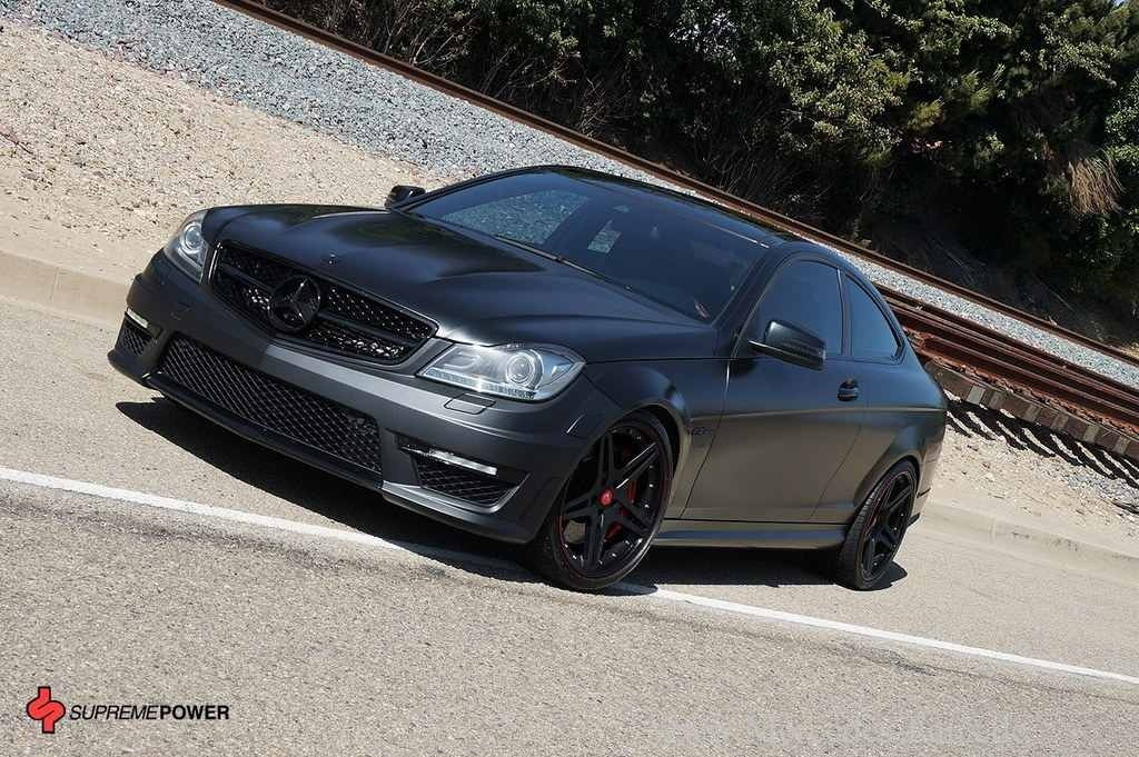"Schwarzmalerei" ist bei Tunenr immer in Mode. Black & better kommt auch der Mercedes C63 AMG in Sichtweite, den der US-Veredler "Supreme Power" in der Werkstatt hatte. Die bullige Optik brachte der Mercedes C63 AMG ja schon mit. Die Motorpower auch. Fehlte nur noch das gewisse Etwas in Form von Folie. Farbe und Felgen.