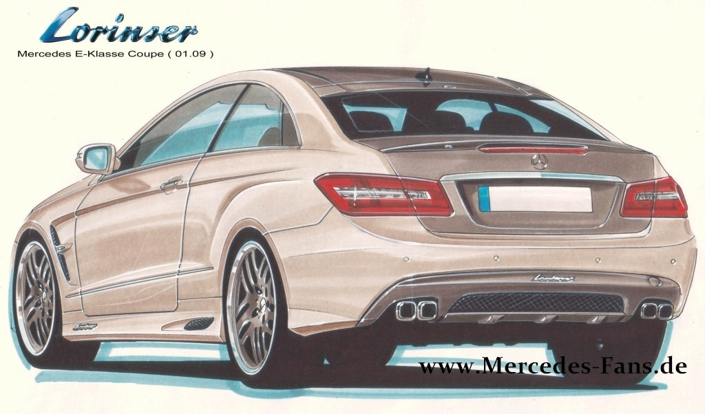 Mehr Leistung, mehr Abtrieb, mehr Optik! So das Ergebnis eines Vieraugengesprächs, das Sportservice Lorinser mit der neuen Mercedes-Benz E-Klasse W212 führte. Die ersten Bilder können wir bereits jetzt auf Mercedes-Fans.de präsentieren. Und als Extra liefern wir auch gleich noch die erste Zeichnungen des Loriser E-Klasse Coupés mit.