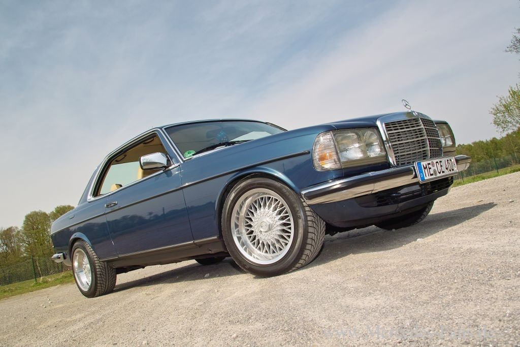 Das 82er W123 Mercedes 230 CE Coupé präsentiert sich dezent getrimmt