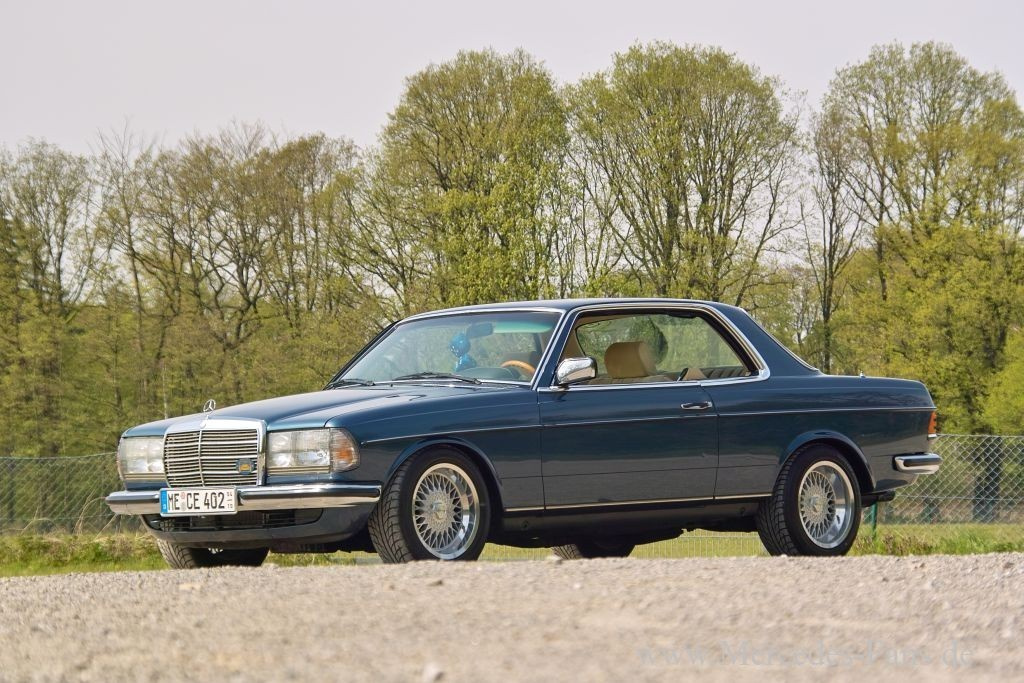 Das 82er W123 Mercedes 230 CE Coupé präsentiert sich dezent getrimmt