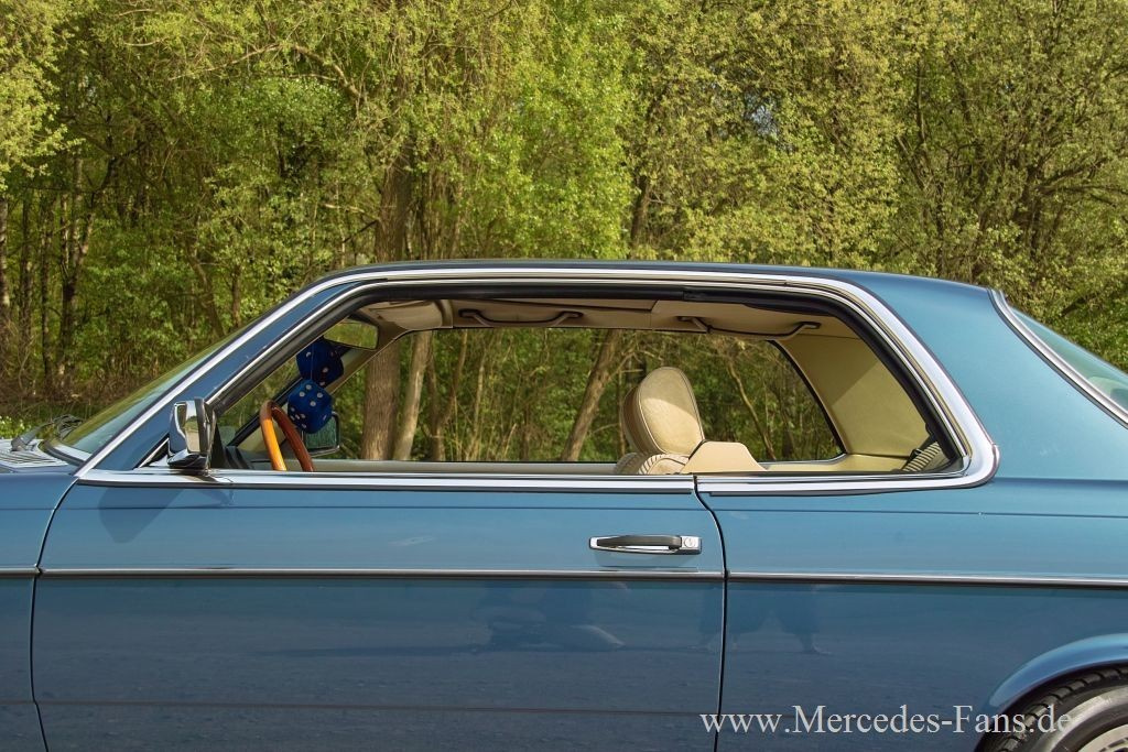 Das 82er W123 Mercedes 230 CE Coupé präsentiert sich dezent getrimmt