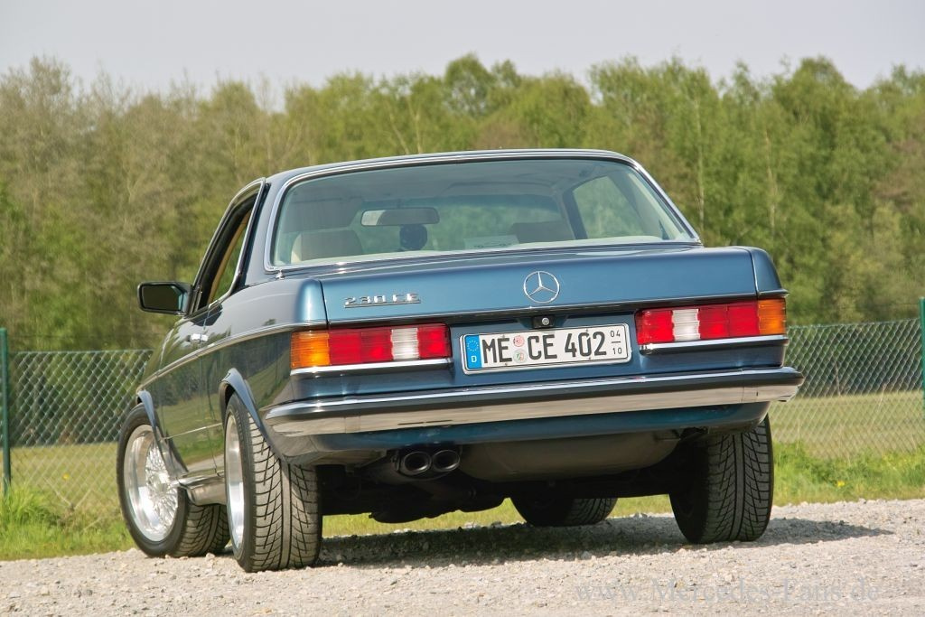 Das 82er W123 Mercedes 230 CE Coupé präsentiert sich dezent getrimmt