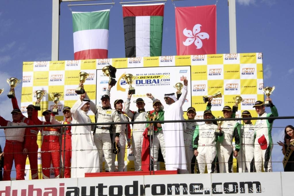 Beim 24-Stunden-Rennen von Dubai (10. bis 12. Januar 2013) gelang dem SLS AMG GT3 vom Kundenteam Abu Dhabi by Black Falcon erneut ein ungefährdeter Sieg. Der Flügeltürer mit der Startnummer 1 und den Fahrern Khaled Al Qubaisi (UAE), Bernd Schneider (GER), Jeroen Bleekemolen (NED) und Sean Edwards (GB) ging von der Pole Position ins Rennen und gewann das Rennen mit zwei Runden Vorsprung. Damit gelang dem Team die Wiederholung des Vorjahreserfolgs.