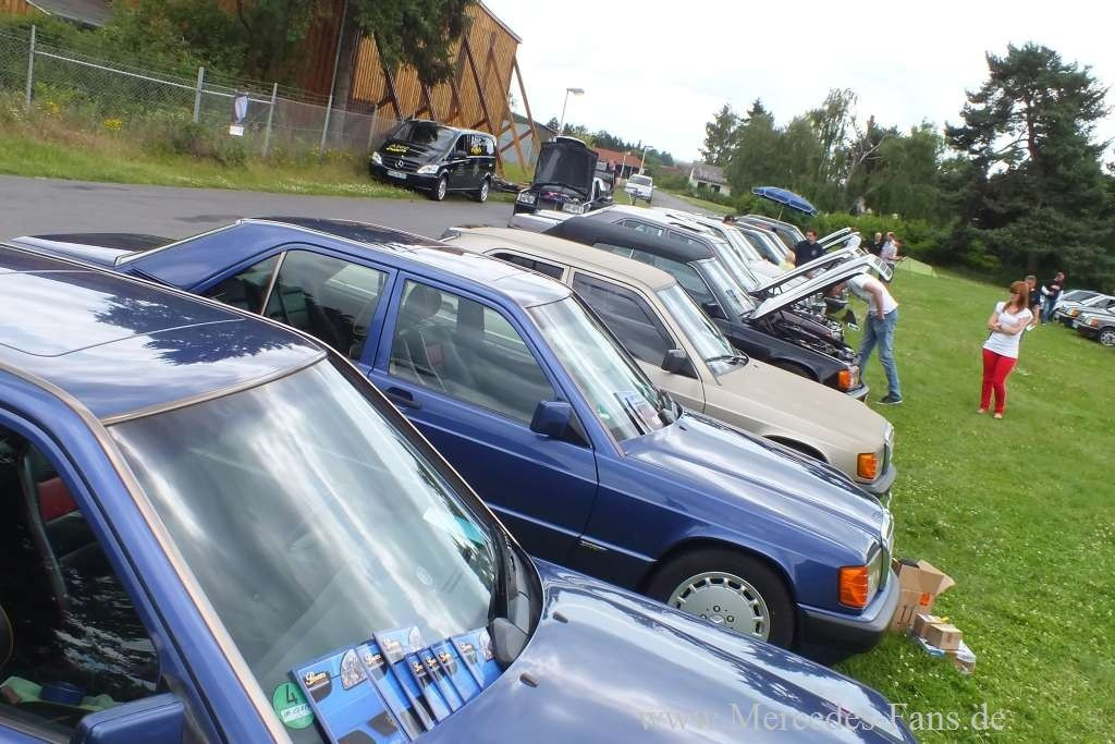 Mit dem Wettergott im Bunde standen die Organisatoren des 9. Koblenzer Treffen des W201 e.V. Denn am Samstag schien am Mittag wunderschön die Sonen auf den Treffenplatz am "Alten Flugplatz" in Mendig. Rund 50 Mercedes-Fahrzeuge standen auf dem Treffengelände. Das Meeting war - wie schon in der Vergangenheit - vom W201 e.V. perfekt organisiert. Für alles, was ein Dreitagestreffen braucht, war in bester Weise Vorsorge getroffen. Speisen, Getränke, Duschen, WC und dann auch noch wie gesagt - Regenpause und reichlich Sonne. Kien Wuunder, dass unter diesne Vorzeichen alle Besucher des Treffens des W210 e.V. ein Lächeln im Gesicht hatten.