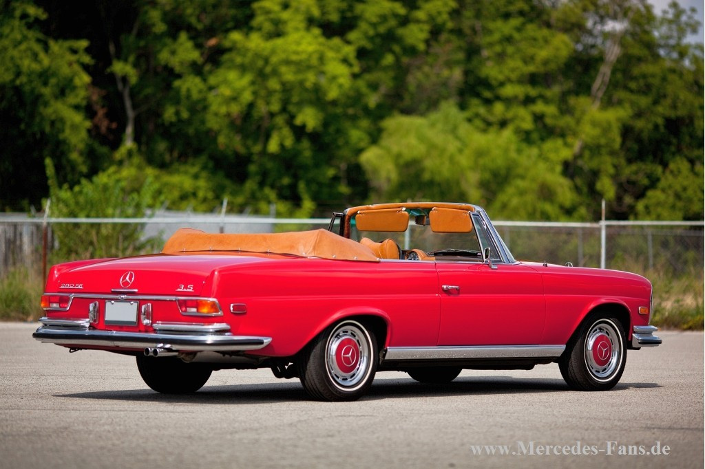 Wer heutzutage einen neuen offenen Mercedes-Benz fahren will, hat ein paar Möglichkeiten. Neben der aktuellen E-Klasse und dem neuen SLK bietet die Daimler AG den Mercedes-Benz Roadster SL und demnächst den neuen Supersportwagen SLS als Roadster an. Eine große Limousine als Cabriolet wie hier auf Basis der S-Klasse - gibt es leider nicht mehr. Das hier gezeigte Modell ist ein 1971 280SE der Baureihe W 111.