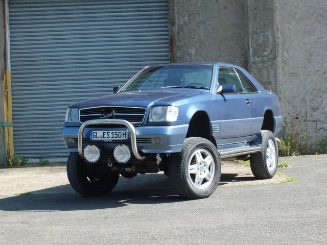 Der Big Foot von Schulztuning ist ein extrem seltener Umbau, bei dem ein Mercedes C124 Coupé auf das Chassis einer Mercedes G‑Klasse gesetzt wurde. Das Fahrzeug kombiniert die Karosserie-Eleganz des 124er Coupés mit der Geländetechnik und Bodenfreiheit der G‑Klasse, was ihm seinen „Monstertruck“-ähnlichen Auftritt und den Namen „Bigfoot“ einbrachte.