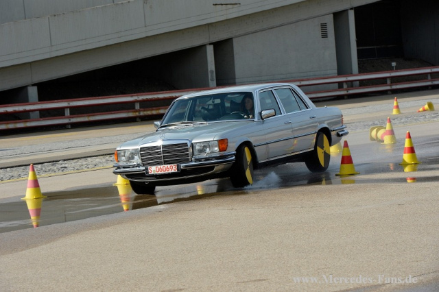 Einen entscheidenden Schritt in die Zukunft der automobilen Sicherheit macht das Unternehmen mit der 1972 vorgestellten S-Klasse der Baureihe W 116. Die Oberklasse-Limousine zeichnet sich unter anderem durch noch besseres Crashverhalten und besonders hohen Komfort für optimale Konditionssicherheit aus, dazu kommen zahlreiche weitere Detaillösungen für passive und aktive Sicherheit. Ihre Vorderachse mit Lenkrollradius null und progressiver Bremsnickabstützung ist für sich genommen bereits ein wichtiger Beitrag zur aktiven Sicherheit, doch sie wird auch zur Basis für eine weitere epochale Anwendung: In der Baureihe W 116 hat im Jahr 1978 das Anti-Blockier-System ABS Serienpremiere, das die Lenkfähigkeit eines Fahrzeugs auch bei Vollbremsungen sicherstellt und den Bremsweg insbesondere auf nasser Straße deutlich verkürzt. ABS wird über mehr als 20 Jahre lang von der ersten Idee bis zur Serienreife entwickelt: Ein erstes Patent dafür reicht Dr. Hans Scherenberg, von 1966 bis 1977 Entwicklungschef des Unternehmens, bereits 1953 ein.
