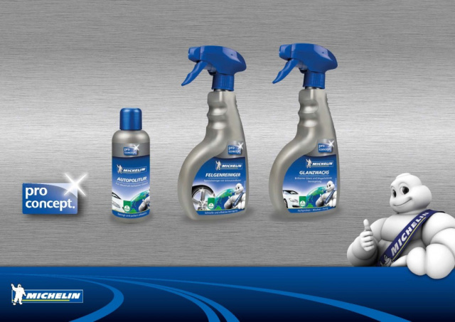 Michelin erweitert das Spektrum seiner Autopflegeprodukte um die neue MICHELIN Pro Concept Reihe. Die Premiumerzeugnisse "made in Germany" bieten die bewährte High Performance von Michelin und überzeugen mit hohem Komfort in der Handhabung, maximaler Materialverträglichkeit und ausgeprägter Langzeitwirkung. Die MICHELIN Pro Concept Serie startet mit drei Produkten, die mit dem Dekra-Zertifikat für sehr gute Reinigungs- beziehungsweise Konservierungsleistung sowie hohe Materialverträglichkeit ausgezeichnet sind: Felgenreiniger, Glanzwachs und Autopolitur.