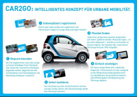 ie car2go edition basiert auf dem benzinbetriebenen smart fortwo mhd. Durch die Start-Stopp-Automatik wird jeder Ampelstopp im urbanen Umfeld zum Spritsparen genutzt, und die Umweltbilanz von car2go weiter erbessert. Ein weiteres Kennzeichen der car2go edition ist ihre robuste Innenausstattung, die das Fahrzeug für den Mietbetrieb besonders geeignet macht. Kernstück ist jedoch die in Zusammenarbeit mit der in Ulm ansässigen Daimler TSS GmbH neu entwickelte Telematik. Diese ist optisch und technisch nahtlos in das Fahrzeug integriert. In der zentralen Bedieneinheit mit berührungsempfindlichem Bildschirm finden jetzt auch der Fahrzeugschlüssel sowie die zum Betanken oder zur Einfahrt in Parkhäuser notwendigen Chipkarten ihren Platz, die vormals im Handschuhfach ntergebracht waren. Die Benutzer-Oberfläche wurde ebenfalls überarbeitet und lässt sich nicht nur komfortabler bedienen, sondern entspricht auch optisch stärker als bisher dem car2go-Design. Das integrierte Radio- und Navigationssystem wurde qualitativ deutlich aufgewertet. Die Telematik-Einheit ist mit der Fahrzeug-Elektronik vernetzt und kann dadurch die Wegfahrsperre steuern: Wenn ein Kunde mithilfe seiner Zugangsberechtigung sowie durch Eingabe einer persönlichen Geheimzahl einen Mietvorgang beginnt, wird die Wegfahrsperre freigeschaltet, und nach Abschluss des Mietvorganges wird sie sofort wieder aktiviert. Neu und für das Flottenmanagement von großer Bedeutung ist zudem die Möglichkeit, Softwareupdates zeitsparend über Funk (over-the-air) vornehmen zu können. Während bislang neue Softwareversionen von Hand einzeln auf die Fahrzeuge gespielt werden mussten, erfolgt dies nun zeitgleich und ferngesteuert auf allen Fahrzeugen gleichzeitig.