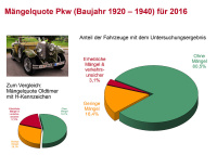 In vorbildlich technischem Zustand sind die unter die Lupe genommenen Klassiker aus der Vorkriegszeit. Bei den für den Straßenverkehr zugelassenen Oldtimern der Baujahre 1920 bis 1940 sind über 80 Prozent der Fahrzeuge meist sehr gepflegt und ohne jegliche Mängel unterwegs.