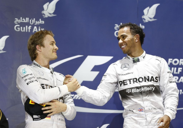 Falls jemand gedacht haben sollte, dass aufgrund der leiseren neuen Power-Units der Thrill aus der Formel 1 raus sei, dann muss er nach dem F1-Grand Prix in Bahrain seine Meinung wohl ändern. Denn die beiden souverän das Feld führenden Silberpfeile lieferten sich über Runden einen packenden Zweikampf. Verbissen, sportlich, fair - Lewis Hamilton und Nico Rosberg schenkten sich zur Freude der Zuschauer nichts. Am Ende überquerte Lewis Hamilton als erster die Ziellinie. Nios Rosberg wurde zweiter, bleibt aber Führender in der Wertung zur Fahrerweltmeisterschaf