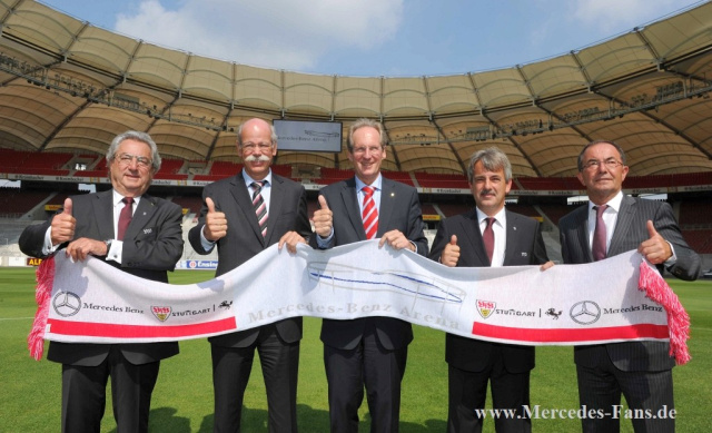 Mercedes-Benz bleibt exklusiver Automobilpartner des VfB Stuttgart. Die ursprünglich noch bis 2012 geltende Zusammenarbeit wurde vorzeitig um weitere fünf Jahre bis Ende der Saison 2016/17 verlängert. Dies wurde heute bei der Einweihung des umgebauten Stadions bekanntgegeben, an der auch Daimler-Vorstandsvorsitzender Dr. Dieter Zetsche teilnahm.