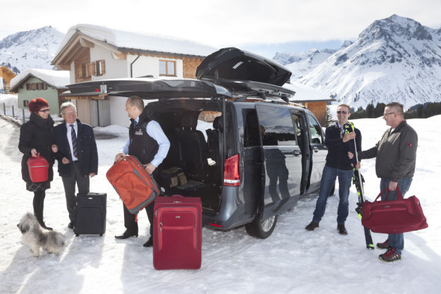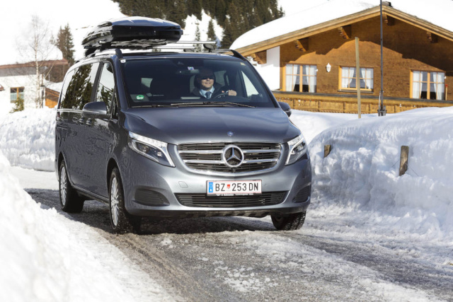 Die Großraumlimousine von Mercedes-Benz: das ideale Fahrzeug zur Personenbeförderung in Wintersportgebieten