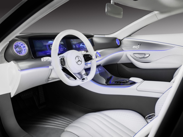 Darüber hinaus wurde auf der IAA 2015 bekannt, dass die Instrumententafel der Studie Concept IAA im Wesentlichen dem Cockpit der kommenden E-Klasse entsprechen werde. Demzufolge wird das Kombiinstrument in der E-Klasse auch aus zwei nebeneinander angeordneten, jeweils 12,3 Zoll großen Bildschirmen bestehen, die filigran und formschön in den Armaturenträger eingefügt sind.(Video: walkoART)