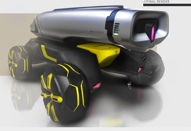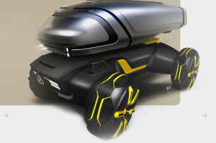 Bei ihren Entwürfen haben sich die Macher des Projekts übrigens vom Mercedes-Benz Unimog inspirieren lassen - und zwar nicht von ungefähr: Kurze Überhänge, viel Bodenfreiheit und Allesüberwinderqualitäten hat nämlich - zumindest der Idee nach - auch der Mercedes Across zu bieten. Der Antrieb des auch autonom fahrenden Across ist vollelektrisch. Jedes Rad wird von einem eigenen Elektromotor bewegt. Die Räder selbst sind vom Antrieb eines Schaufelraddampfers inspiriert; sie sehen nach extremer Geländegängigkeit auf festen und losen Untergünden aus.