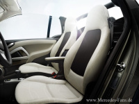 Das Interieur der neuen Generation des smart fortwo wurde neu gestaltet und strahlt frisches und großzügiges Wohlfühl-Ambiente aus. Dazu tragen eine vollflächig mit Stoff bezogene Instrumententafel in neuer Linienführung sowie neue Stoffdesigns bei. Weitere Ausstattungsfeatures unterstreichen die Liebe zum Detail. Dazu zählen unter anderem neue Zifferblätter mit dunkel abgesetzter Zentrumscheibe in Kombi-Instrument und Zusatzinstrumenten und eine optional erhältliche stoffbezogene, klappbare Mittelarmlehne. Als Sonderausstattung ist zudem ein 3-Speichen-Lederlenkrad mit Tempomatfunktion sowie ein Bordcomputer zu haben. Für eine angenehme Lichtstimmung können smart Käufer eine neue Ambientebeleuchtung mit dimmbaren LED-Leuchten wählen.