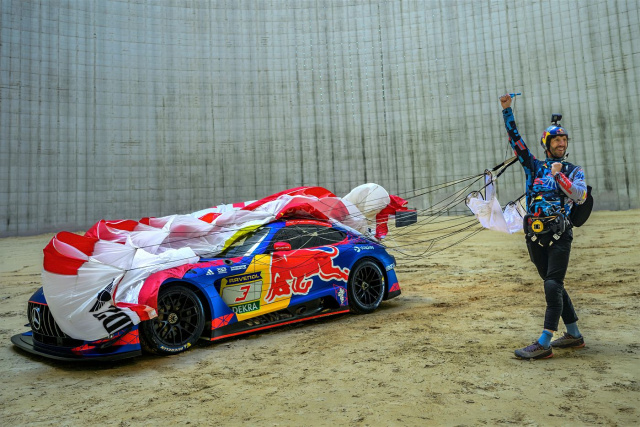 Auch die Präsentation des Autos sorgte für Aufsehen. Die neue Lackierung des Mercedes-AMG Team Verstappen Racing wurde mit einem spektakulären B.A.S.E.-Jump vorgestellt. Der deutsche Extremsportler Max Manow sprang aus 131 Metern Höhe in einen Kühlturm in Meppen und enthüllte dabei die neue Red-Bull-Livery des Einsatzfahrzeugs.